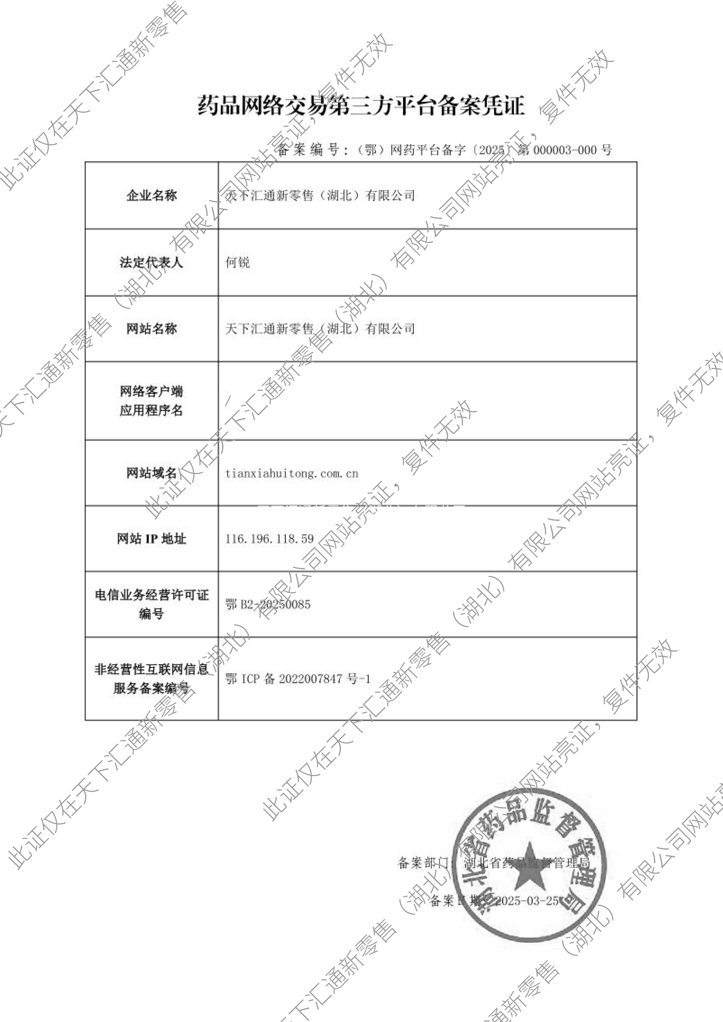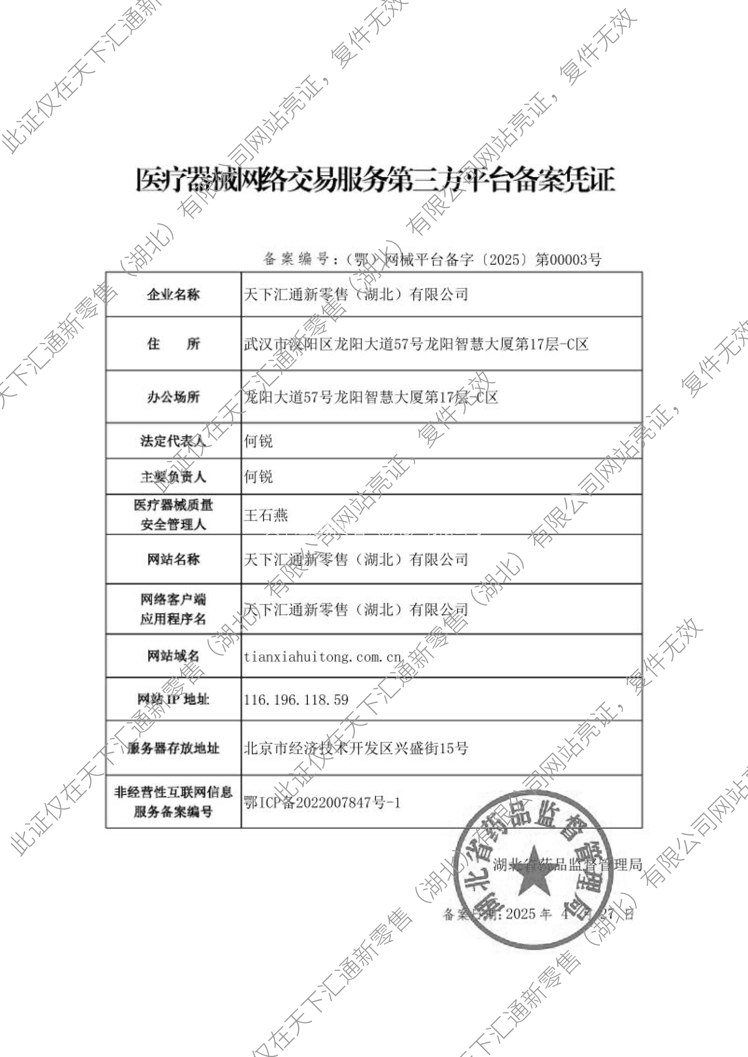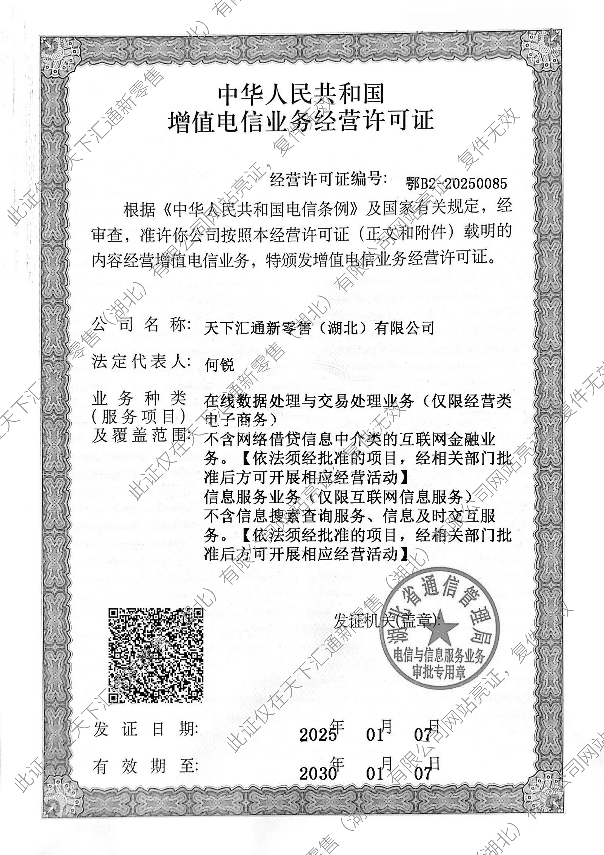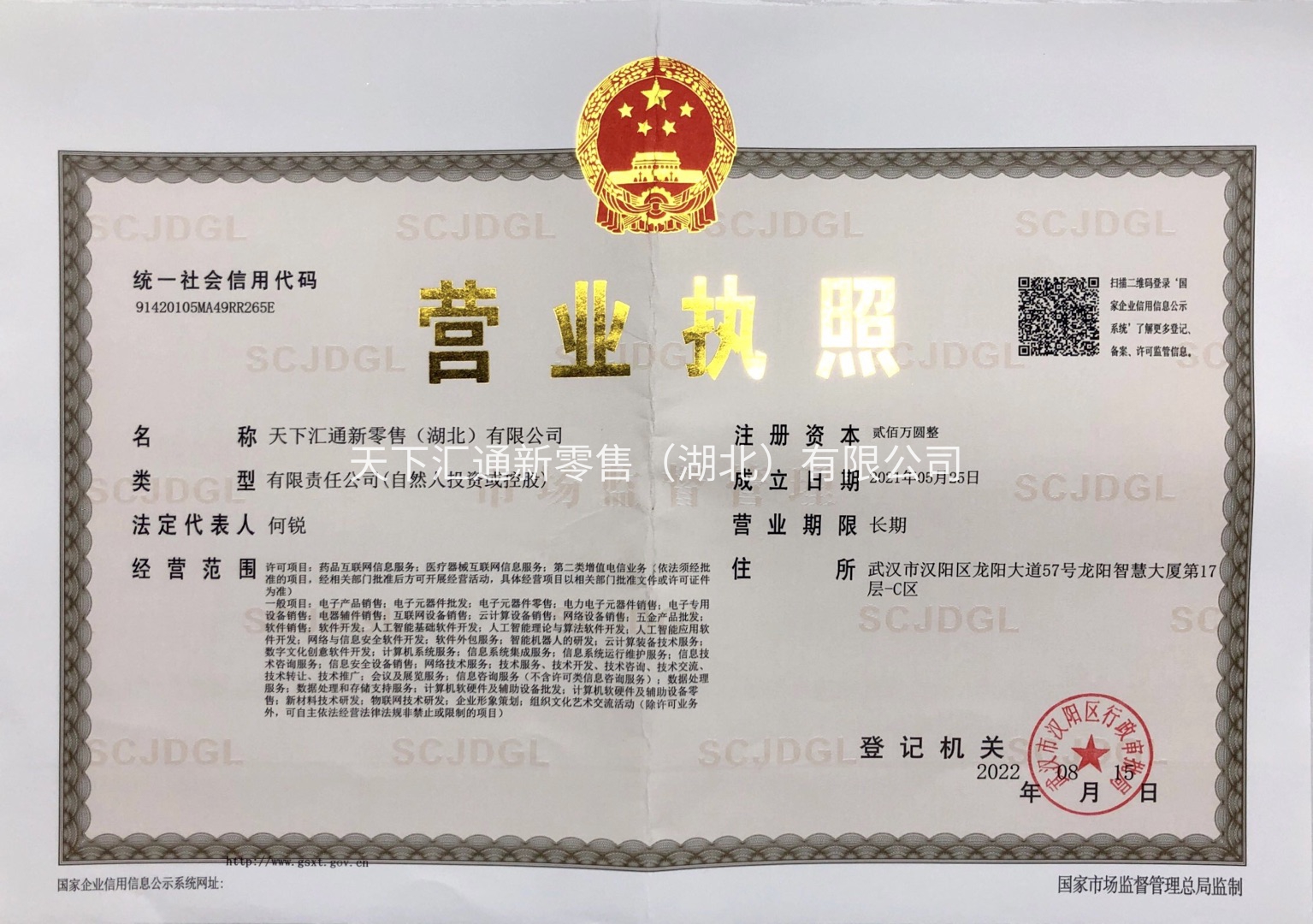 天下汇通新零售(湖北)有限公司的经营范围:药品互联网信息服务;医疗器械互联网信息服务;第二类增值电信业务(依法须经批准的项目,经相关部门批准后方可开展经营活动,具体经营项目以相关部门批准文件或许可证件为准)一般项目:电子产品销售;电子元器件批发;电子元器件零售;电力电子元器件销售;电子专用设备销售;电器辅件销售;互联网设备销售;云计算设备销售;网络设备销售;五金产品批发;软件销售;软件开发;人工智能基础软件开发;人工智能理论与算法软件开发;人工智能应用软件开发;网络与信息安全软件开发;软件外包服务;智能机器人的研发;云计算装备技术服务;数字文化创意软件开发;计算机系统服务;信息系统集成服务;信息系统运行维护服务;信息技术咨询服务;信息安全设备销售;网络技术服务;技术服务、技术开发、技术咨询、技术交流、技术转让、技术推广;会议及展览服务;信息咨询服务(不含许可类信息咨询服务);数据处理服务;数据处理和存储支持服务;计算机软硬件及辅助设备批发;计算机软硬件及辅助设备零售;新材料技术研发;物联网技术研发;企业形象策划;组织文化艺术交流活动(除许可业务外,可自主依法经营法律法规非禁止或限制的项目)
